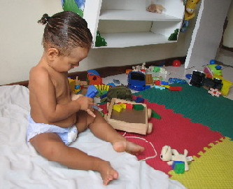 19. Dezember 2009: Icauê geht das erste mal eine Strecke eindeutig alleine, lusigerweise bei Janaina, gleich nachdem wir darüber diskutierten. Vermutlich haben ihn ihre Kinder stimuliert!